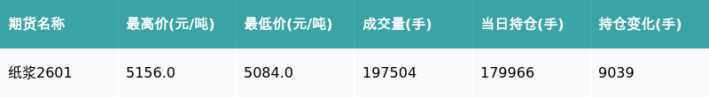 南财智讯10月17日电,南财金融终端盘后期货数据显示,上海期货交易所的纸浆主力合约收跌0.62%,在线炒股配资收盘报5122.0元/吨,日内资金流入5763.79万元。其他相关指标见下表: